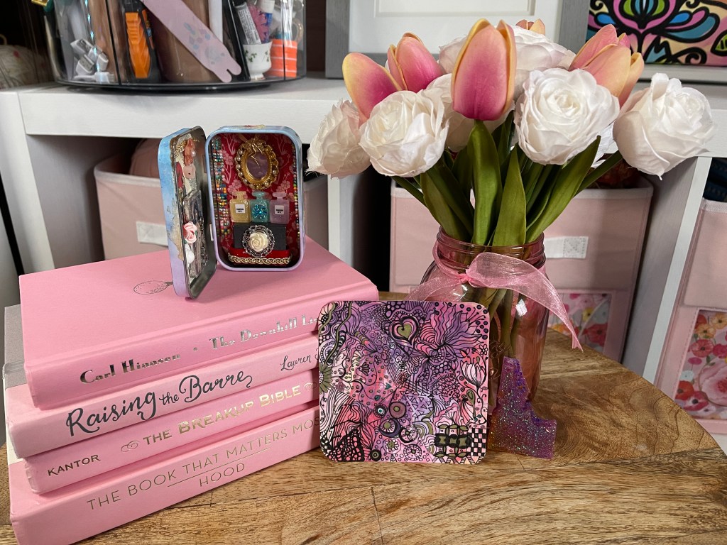 The tie-dyed paper I used in this project was from a Rose Art spin art kit from the early 2000s. I believe I created it around 2007. It ended up in a drawer, patiently waiting to be chosen for a project. I enjoy discovering supplies at Goodwill; it’s a treasure trove for experimenting and repurposing items. I have amassed hundreds of skeins of embroidery floss, beads, and wooden hoops for embroidery, keeping them for years until inspiration strikes for a new experiment.