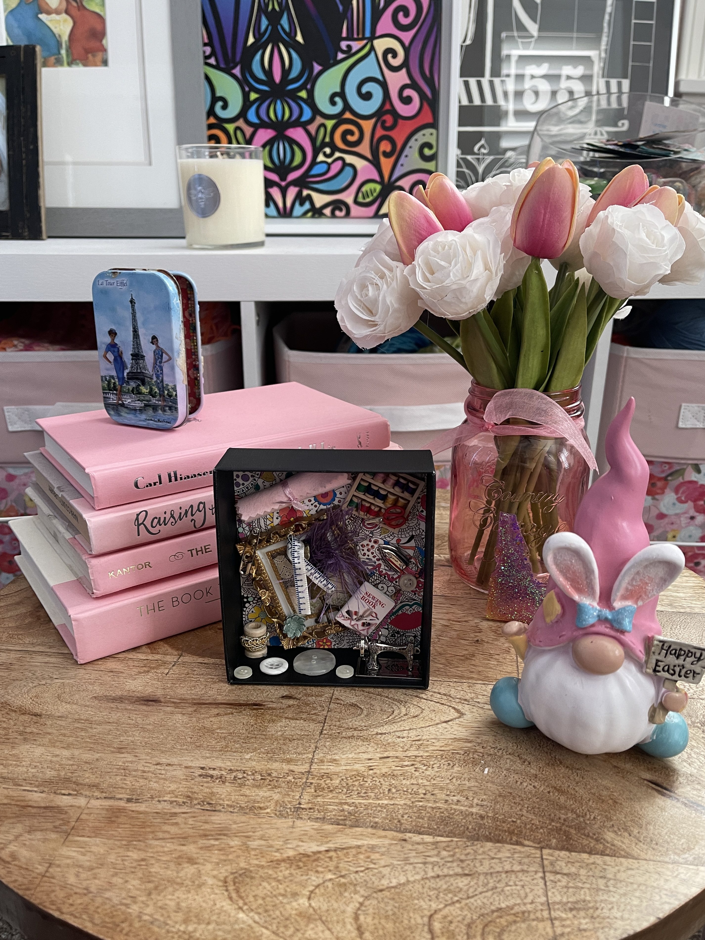 I haven’t been very productive lately. I’ve been rewatching Outlander for the sixth time, watching YouTube videos on the Ruby Franke court case, and getting some extra sleep. I underwent oral surgery last Tuesday, and as expected, it’s been tough. I’m dealing with a bruised cheek and a black eye from the procedure. This is my fourth attempt to fix a sinus issue caused by the initial surgeon who worked on my mouth. When I mustered the energy to create something, I kept it simple. During our 2013 trip to London, I fell in love with a fabric store called Liberty. Using an old makeup box and a doodle drawing from a couple of years back, I recreated the Liberty store vibe.